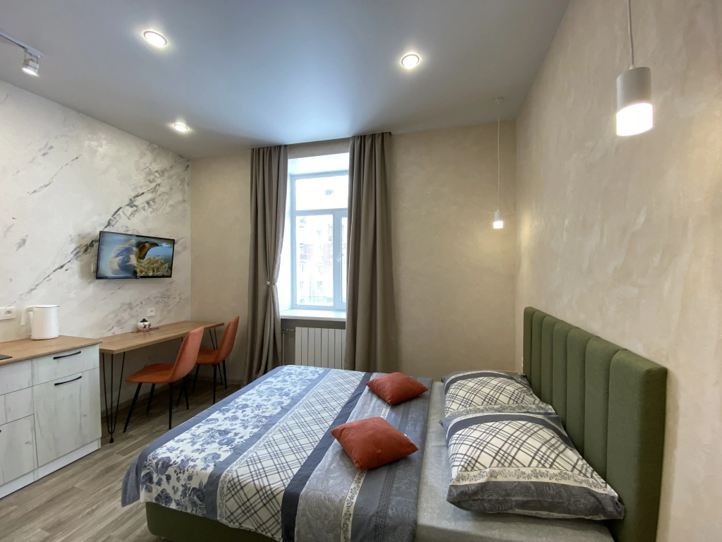 Номер уютно обставлен и оснащён необходимым, чтобы отдохнуть после долгого и насыщенного дня. Имеются телевизор. Перечисленные услуги есть не во всех номерах.