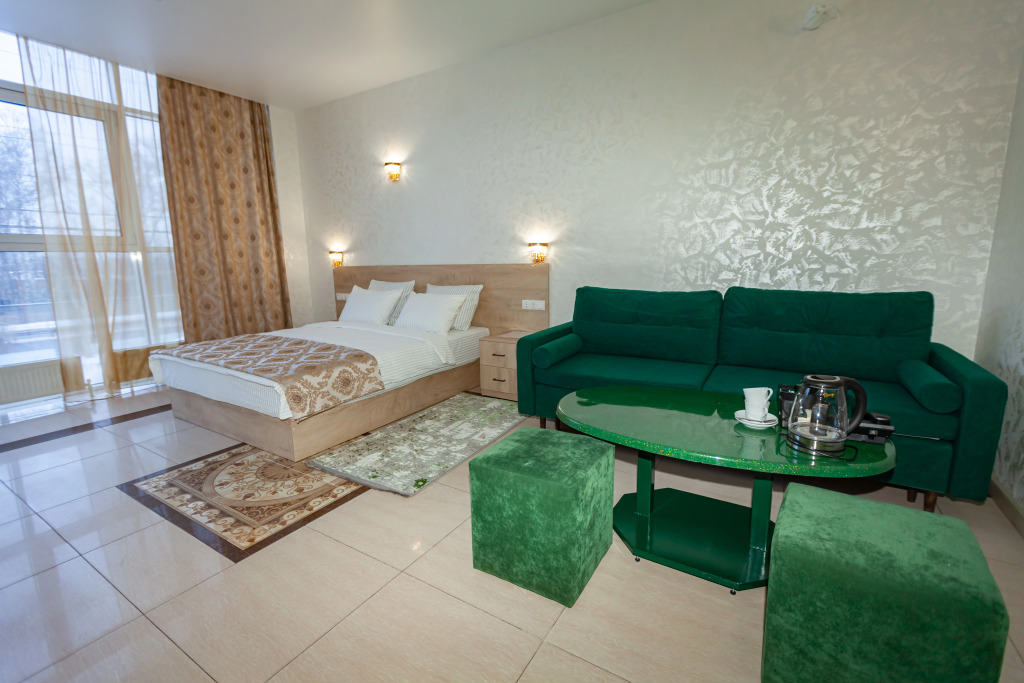 В мини-отеле представлено 13 номеров 4-х различных категорий. В каждом номере есть: окно, плазменный телевизор, кондиционер, мини-холодильник, электрочайник, санузел с душевой кабиной, зеркалом, феном и душевыми принадлежностями, обеденный столик, стулья, прикроватные тумбочки, шкаф с подставкой под багаж, зеркало в полный рост.