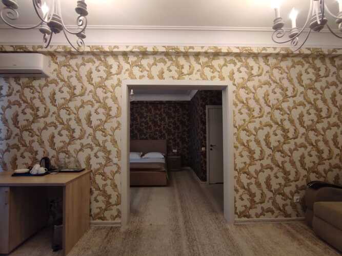 Номер уютно обставлен и оснащён необходимым, чтобы отдохнуть после долгого и насыщенного дня. Имеются телевизор. Перечисленные услуги есть не во всех номерах.