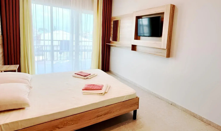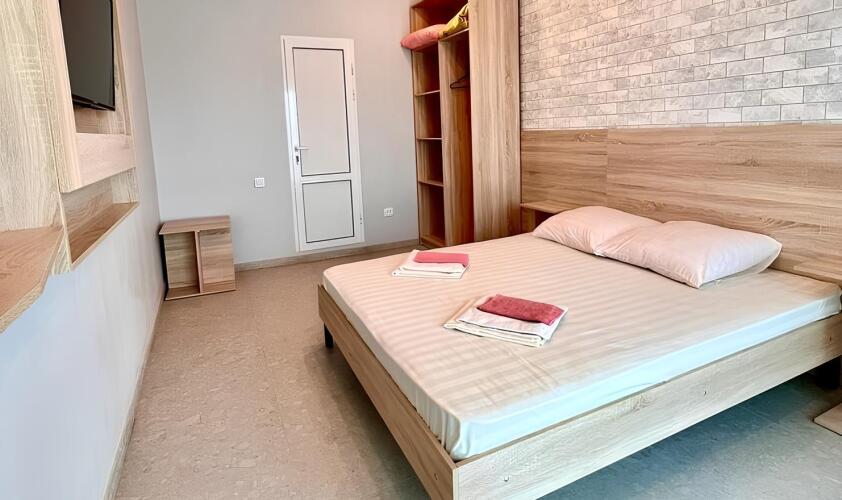 Номер уютно обставлен и оснащён необходимым, чтобы отдохнуть после долгого и насыщенного дня. Имеются телевизор. Перечисленные услуги есть не во всех номерах.