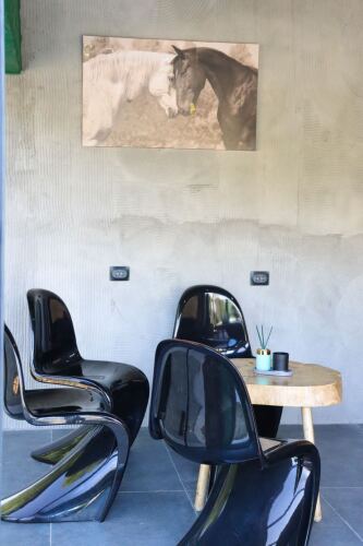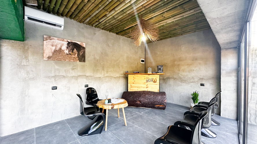 К услугам гостей 10 барнхаусов с террасой и панорамными видами. В каждом барне собственная кухня, оснащённая всем необходимым для комфортного проживания. При желании можно заказать доставку из ресторана. На территории есть прачечная, зал для практик с ковриками и кубиками и массажная зона.