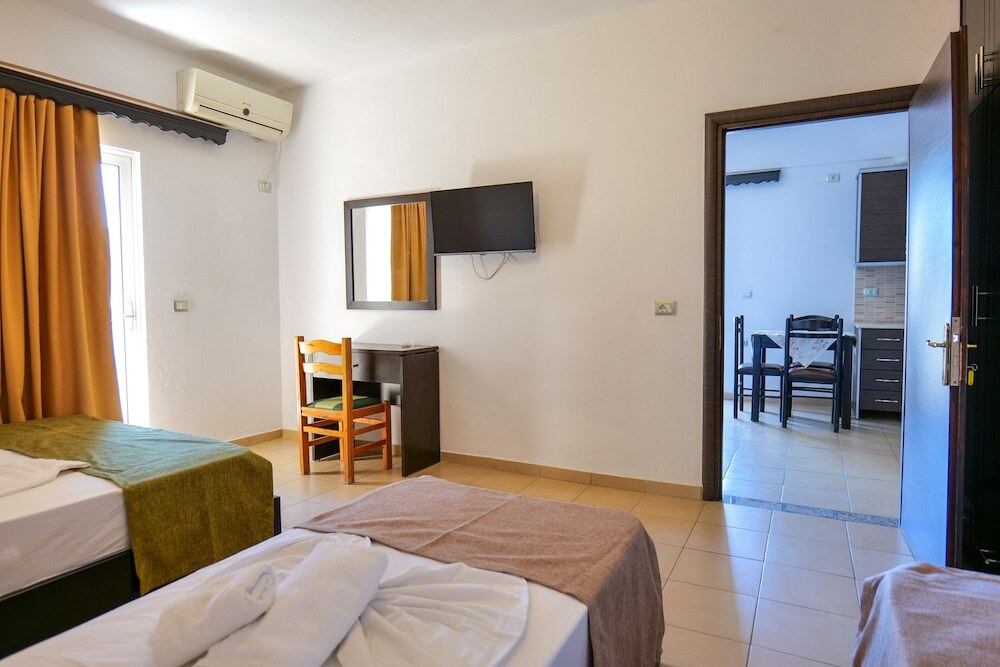 Отель, где хорошо отдыхать перед долгими прогулками. Отель «Hotel Erjoni» находится в Саранде. Этот отель расположен неподалёку от центра города. Рядом с отелем можно прогуляться. Неподалёку: Пляж Ачарави, Пляж Барбати и Пляж Дассия.