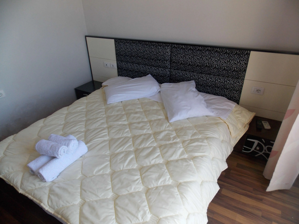 В номере вас будут ждать душ, телевизор, халат и тапочки. Перечисленные услуги есть не во всех номерах.