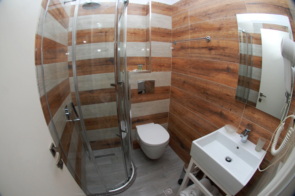 В номере гостей ждут душ, телевизор и тапочки. Оснащение зависит от выбранной категории номера.