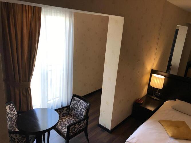 Номер уютно обставлен и оснащён необходимым, чтобы отдохнуть после долгого и насыщенного дня. Имеются будильник, душ, телевизор, мини-бар, халат и тапочки. Оснащение зависит от выбранной категории номера.