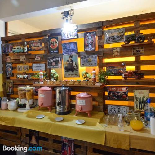 Для гостей работает бар. Время вспомнить о хлебе насущном! Для гостей работает ресторан. Если вы путешествуете на машине, припарковаться можно будет на бесплатной парковке. Также для гостей в отеле: массажный кабинет и солярий.