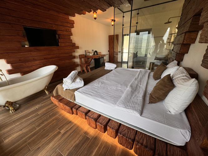 В номере вы найдёте телевизор. Оснащение зависит от выбранной категории номера.