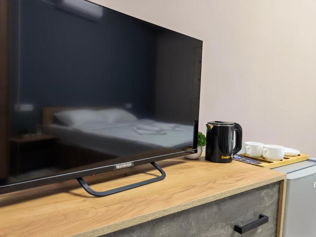 Номер уютно обставлен и оснащён необходимым, чтобы отдохнуть после долгого и насыщенного дня. Имеются телевизор и халат. Оснащение зависит от выбранной категории номера.