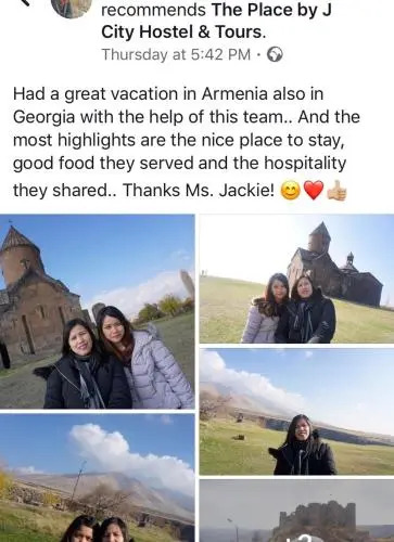 Подходящий вариант для бюджетного отдыха — отель «The Place by J» находится в Ереване. Этот отель расположен в пешей доступности от центра города. Рядом с отелем — Национальный театр оперы и балета, Государственная ассамблея Армении и Государственная картинная галерея Армении.