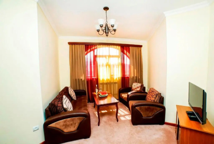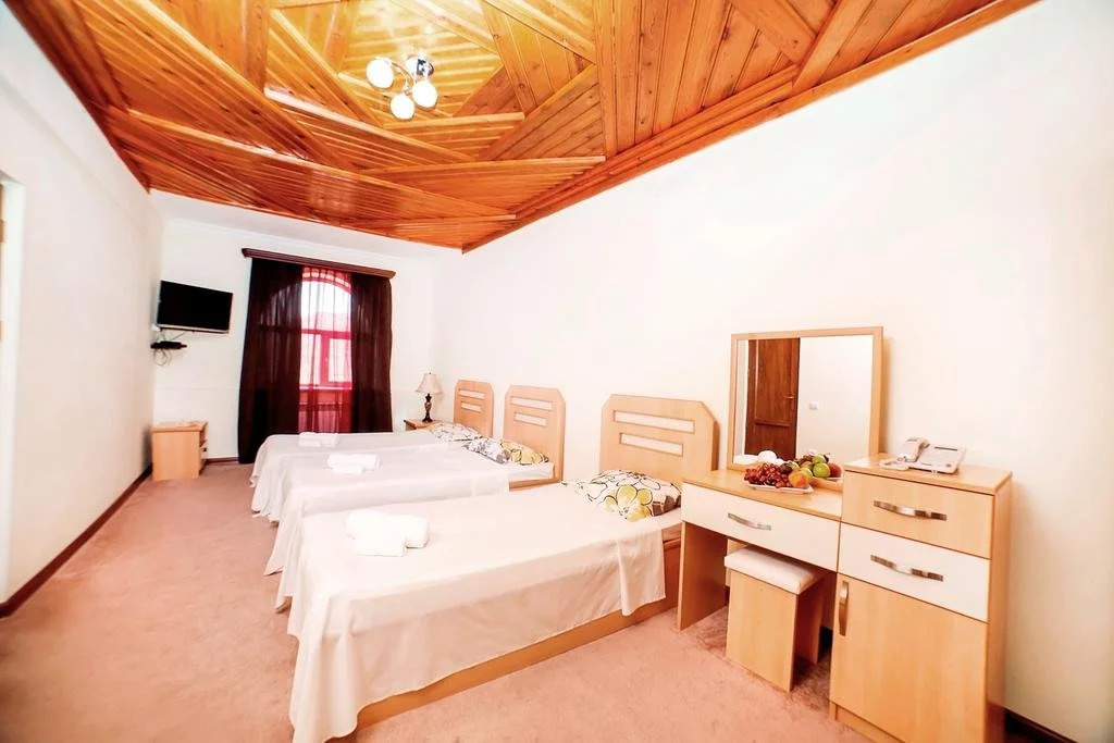 В номере гостей ждут телевизор и тапочки. Оснащение зависит от выбранной категории номера.