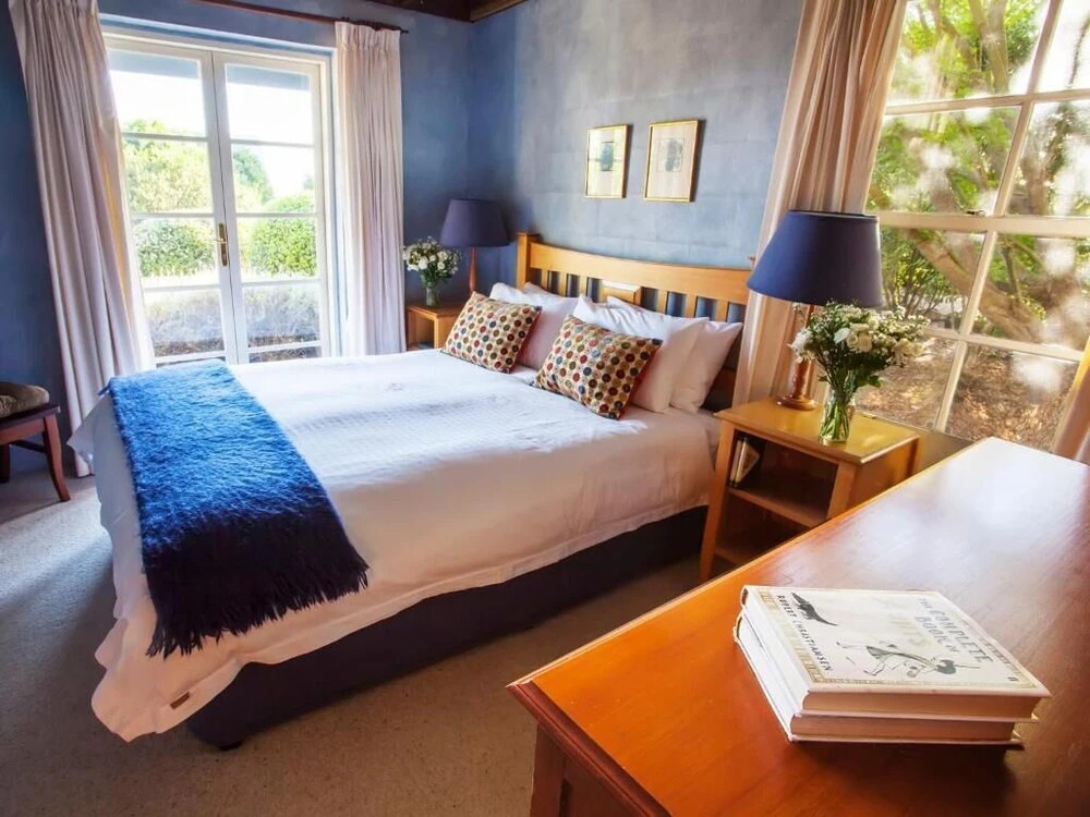 В номерах (7) отеля Vineyard Cottages & Café есть индивидуальные спа-ванны и CD-проигрыватель. Из номеров открывается вид на горы или сад. Постельные принадлежности включают постельные принадлежности премиум-класса. В индивидуально декорированных и обставленных номерах есть отдельные гостиные, а также двуспальная диван-кровать. Пансионат имеет рейтинг 4,5 зв.; в номерах имеется мини-кухни, где есть микроволновая печь и холодильник. В ванных комнатах предлагается следующее: ванные или душевые и гидромассажные ванны, а также ручной душ. Также в ванных комнатах: бесплатные туалетные принадлежности и фен. В каждом номере есть 40-дюйм. ЖК-телевизоры. Предлагается следующее: DVD-проигрыватель. В номерах имеется бесплатные газеты и открывающиеся окна. Обслуживание номеров выполняется ежедневно. Все номера отеля – это номера для некурящих.