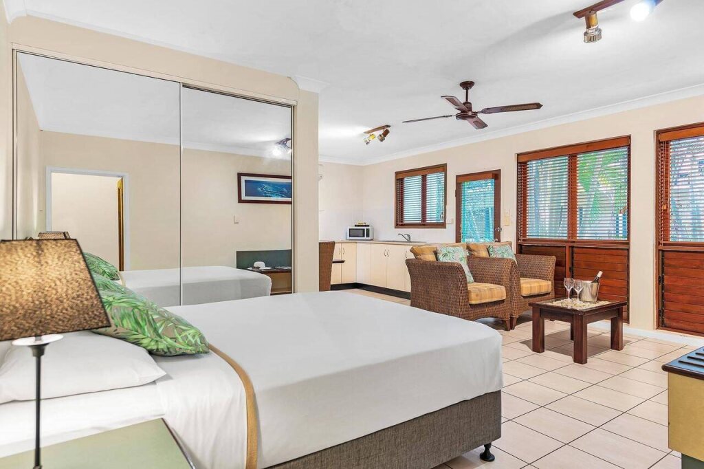 Отель Bay Village Tropical Retreat располагается на пляже в центре города Кэрнс Север, поблизости находятся Кэрнс-Сивик-Театр, Cairns Esplanade и Лагуна Эспланада. Также отель находится недалеко от следующих объектов: Региональная галерея Кэрнса и Торговый центр Cairns Central.