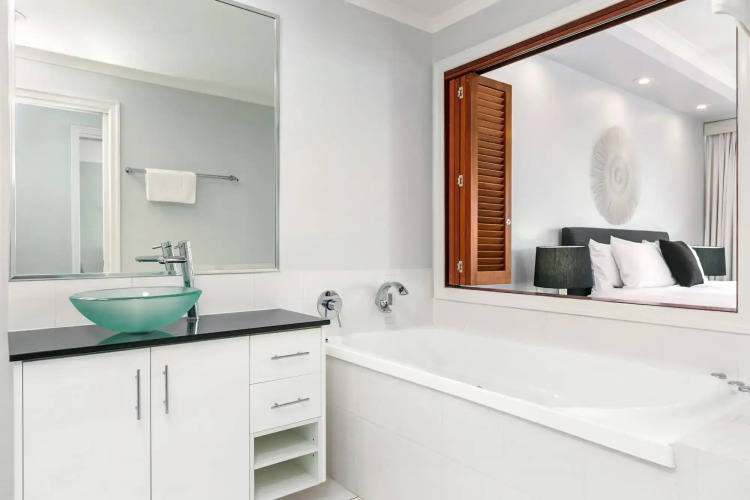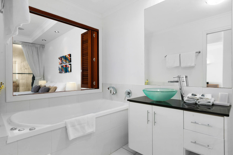В кондиционируемых номерах (15) отеля Bellevue At Trinity Beach предоставляются следующие удобства: кофеваркачайник и сейфы. Имеются балконы, откуда открывается вид на океан. Отель имеет рейтинг 5 зв.; в номерах имеется кухни. За дополнительную плату предоставляется беспроводной доступ в Интернет. В каждом номере есть проекционные ТВ-панели. Предлагается следующее: кабельные каналы и DVD-проигрыватель. В номерах имеется потолочный вентилятор и фен. Все номера отеля – это номера для некурящих.