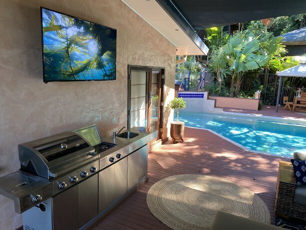 Подходящий вариант для бюджетного отдыха — отель «Cairns Rainforest Retreat» находится в Бейвью-Хайтсе. Этот отель располагается в пешей доступности от центра города.