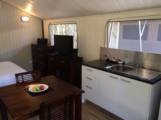 Byron Bay Tourist Village представляет собой комплекс из 40 бунгало, расположенных вокруг природного озера. Все они оснащены кухнями, где есть плита, микроволновая печь, холодильник, кофеварка и чайник. Температуру воздуха можно регулировать с помощью кондиционера.