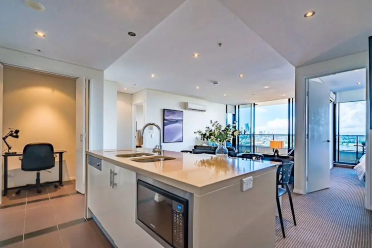 Отель Impressive Views, Sub Penthouse, 2BR Apt, адрес на карте Голд-Кост, 2 Aqua Street, с описанием номеров и возможностью онлайн бронирования на сайте vashotel.ru , стоимость проживания и удобства.
