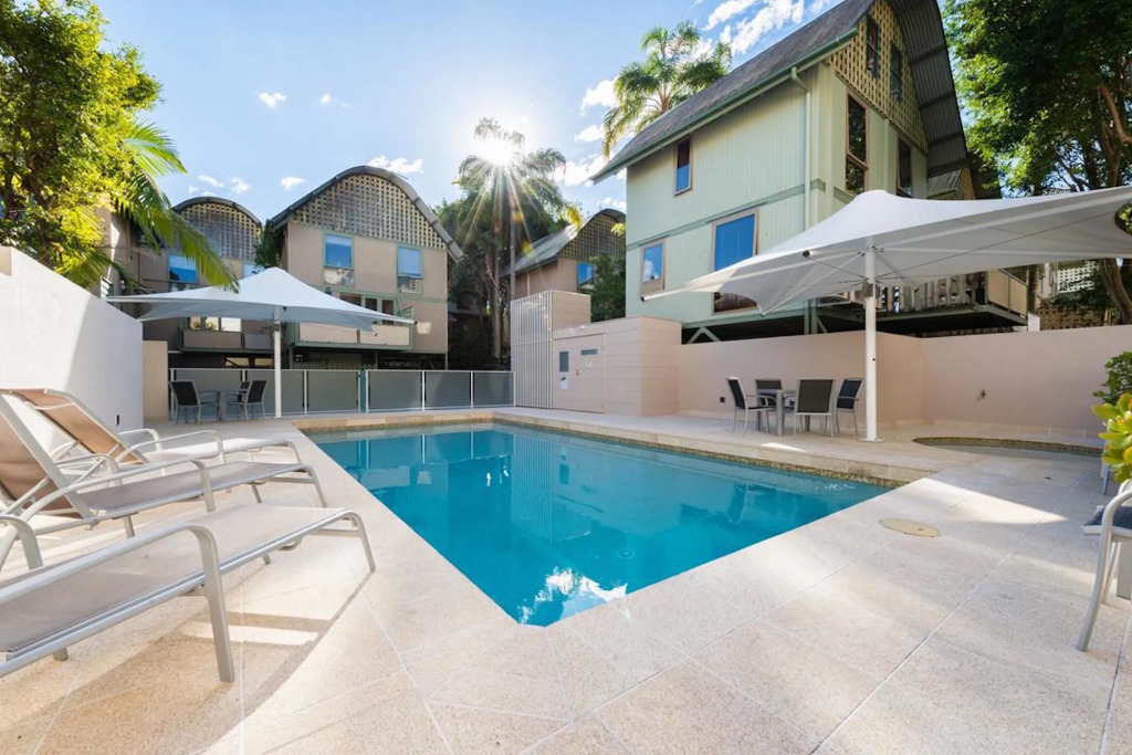 Выбор туристов, путешествующих с семьёй: апартаменты «The Hastings Beach Houses» находятся в Гастингс-стрит. Эти апартаменты расположены в центре города. Перед сном есть возможность прогуляться вдоль главных достопримечательностей. Рядом с апартаментами — Пляж Нуса-Бич, Noosa Spit Recreation Reserve и Yunaman Bushland Reserve.