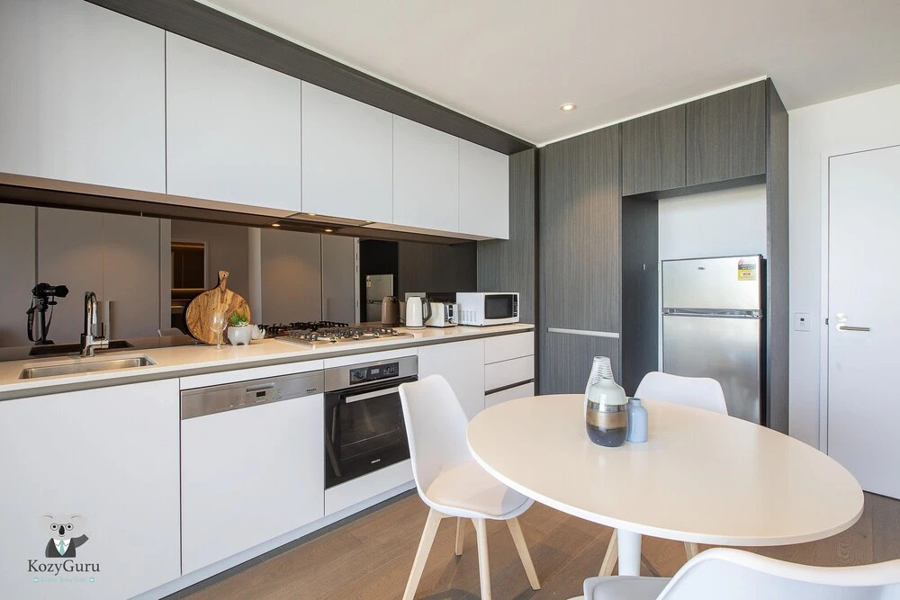 Отель KOZYGURU Docklands Cozy Water View 1BED, адрес на карте Мельбурн, 915 Collins St, с характеристиками номеров и возможностью онлайн бронирования на сайте vashotel.ru , стоимость проживания и удобства.