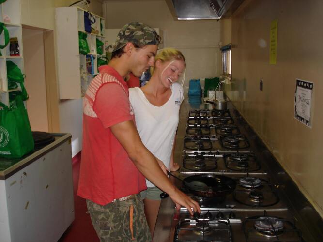 Общая кухня оборудована для самостоятельного приготовления пищи. Бесплатный Wi-Fi на территории поможет всегда оставаться на связи. Любителям спорта подготовили настольный теннис. Скучно не будет, ведь в хостеле к услугам отдыхающих библиотека и площадка для барбекю.
