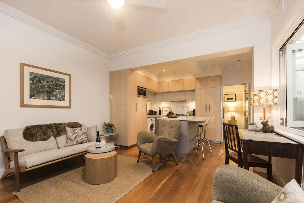 Отель Art Deco 2 Bed Sydney And Darlinghurst Gem, адрес на карте Сидней, 33A/31 Barcom Avenue, с описанием номеров и доступностью онлайн бронирования на ресурсе vashotel.ru , стоимость проживания и удобства.