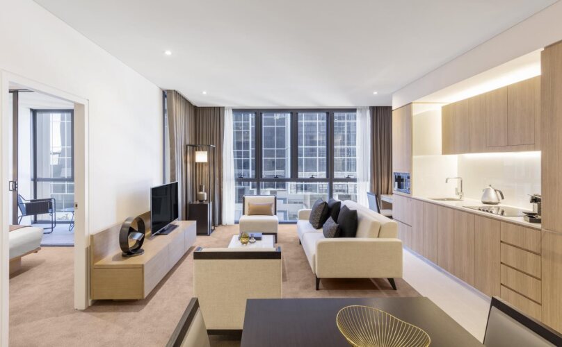 Отель SKYE Hotel Suites Parramatta 5 звезд, адрес на карте Сидней, 30 Hunter Street, с характеристиками номеров и возможностью онлайн бронирования на ресурсе ВашОтель.RU , цены проживания и удобства.
