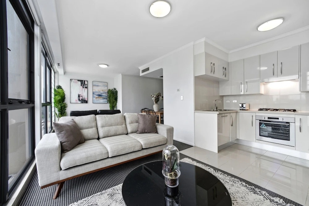 Отель Stylish and Spacious Apt with Double Living Room, адрес на карте Сидней, Lachlan Street, с характеристиками номеров и правом онлайн бронирования на сайте ВашОтель.RU , стоимость проживания и удобства.