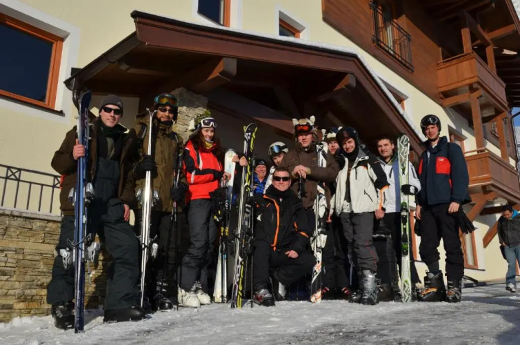 Въезд на лыжах на территорию отеля