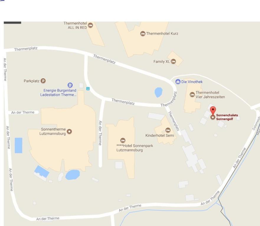 Отель Thermen Chalet 85m², адрес на карте Лютцманнсбург, 4 Thermenplatz, с характеристиками номеров и возможностью онлайн бронирования на сайте vashotel.ru , цены проживания и удобства.
