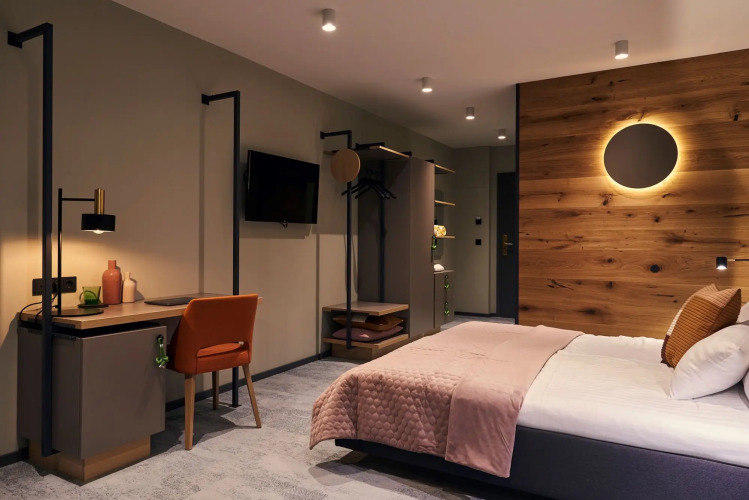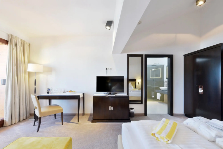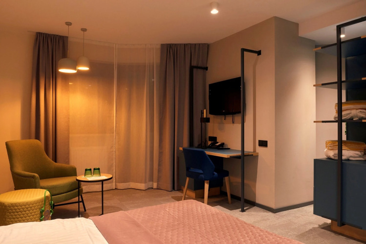 Номер уютно обставлен и оснащён необходимым, чтобы отдохнуть после долгого и насыщенного дня. Имеются халат. Оснащение зависит от выбранной категории номера.