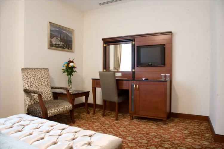 В номере вы найдёте телевизор, мини-бар и халат. Перечисленные услуги есть не во всех номерах.