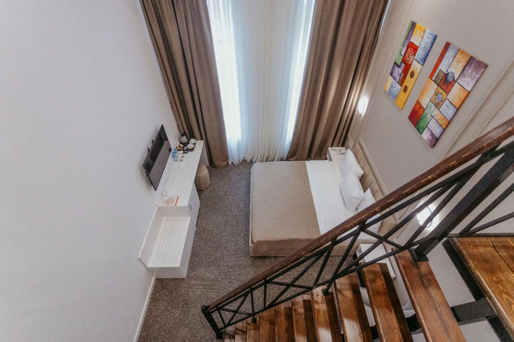Номер уютно обставлен и оснащён необходимым, чтобы отдохнуть после долгого и насыщенного дня. Имеются телевизор, мини-бар и халат. Перечисленные услуги есть не во всех номерах.