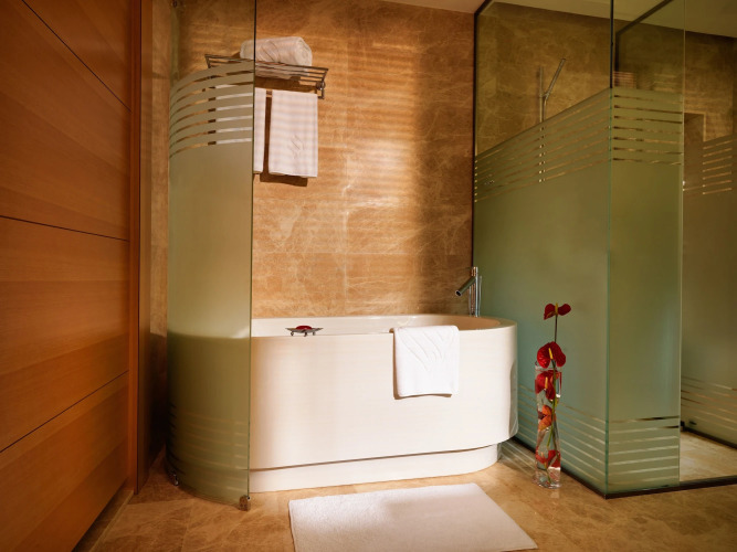 В каждом номере этого шикарного отеля есть собственная ванная комната с отдельной душевой кабиной и ванной, а также большой телевизор с плоским экраном, письменный стол, сейф, кофеварка и комплект для приготовления чая, мини-бар и фен.