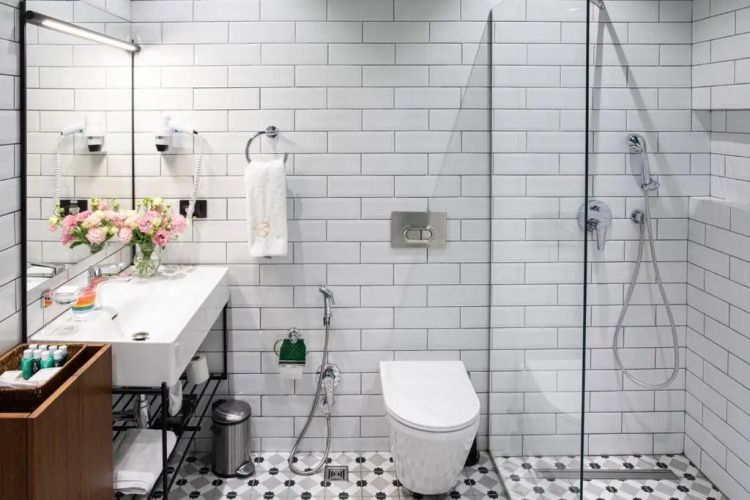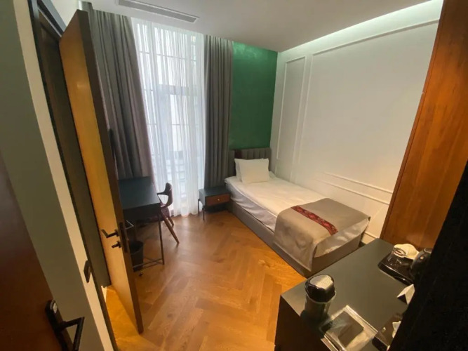 В номере вы найдёте душ, телевизор и тапочки. Оснащение зависит от выбранной категории номера.