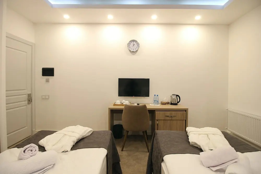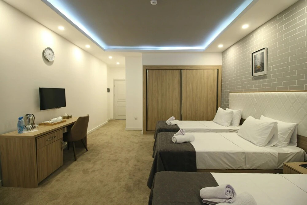 Номер уютно обставлен и оснащён необходимым, чтобы отдохнуть после долгого и насыщенного дня. Имеются душ, телевизор, мини-бар и тапочки. Оснащение зависит от выбранной категории номера.