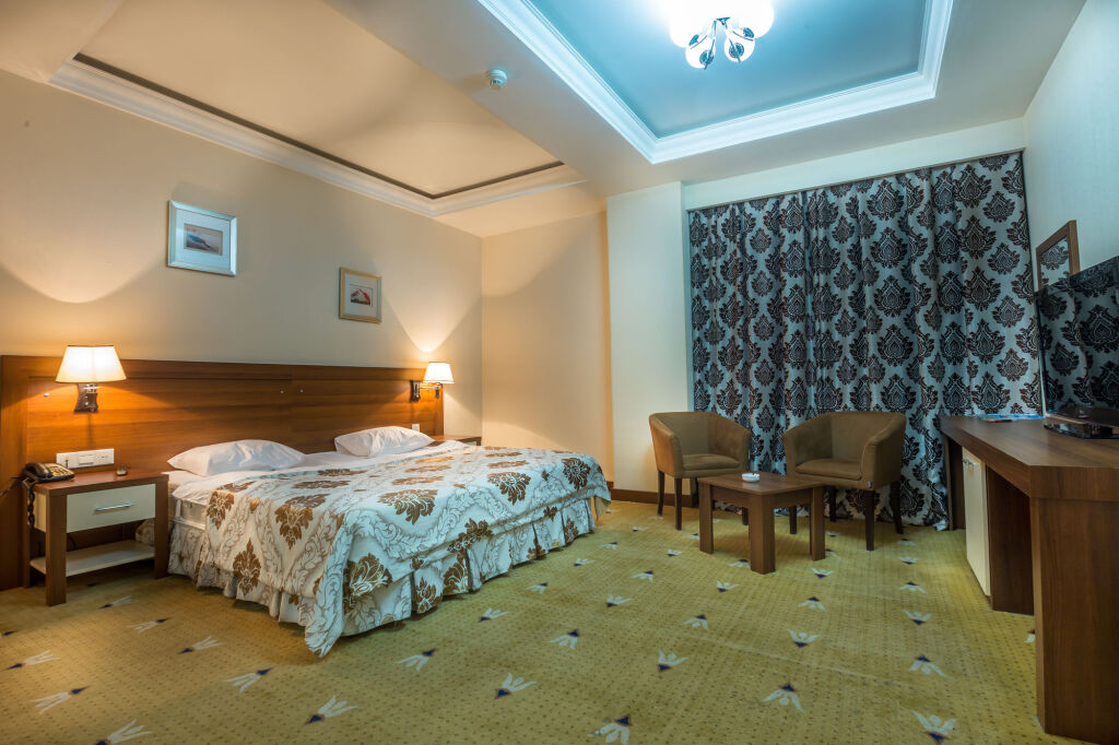 В номере вас будут ждать душ, телевизор, мини-бар, халат и тапочки. Оснащение зависит от выбранной категории номера.