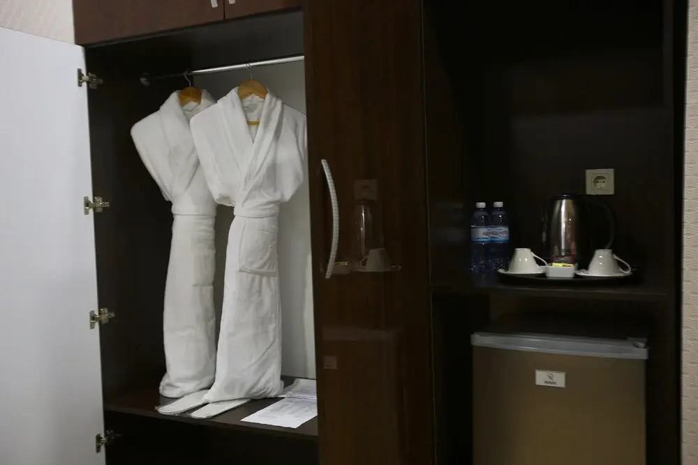 В номере вас будут ждать телевизор и тапочки. Оснащение зависит от выбранной категории номера.