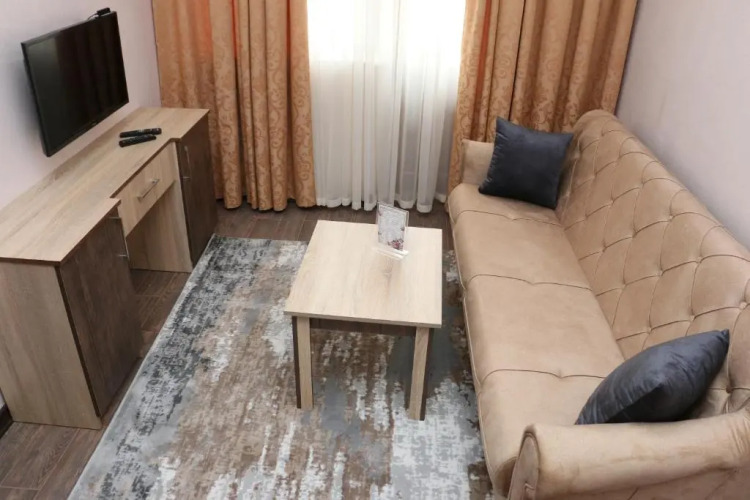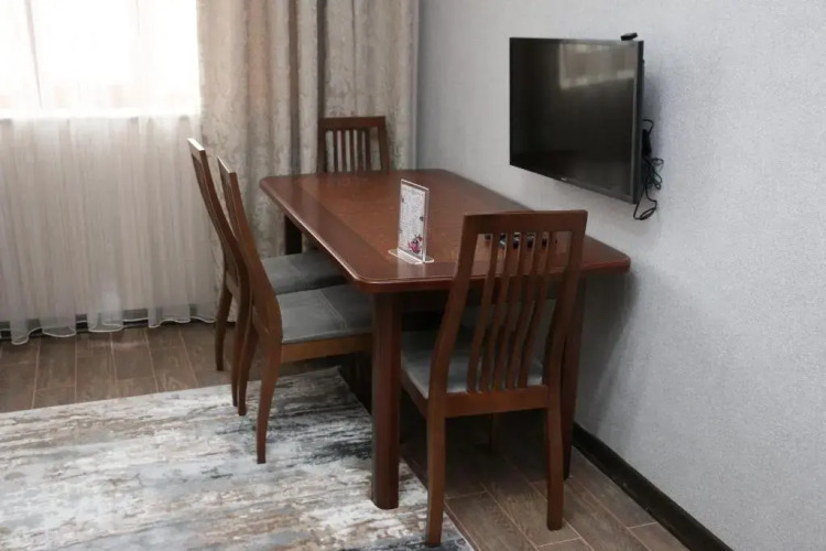 В номере вы найдёте душ, телевизор и тапочки. Оснащение зависит от выбранной категории номера.
