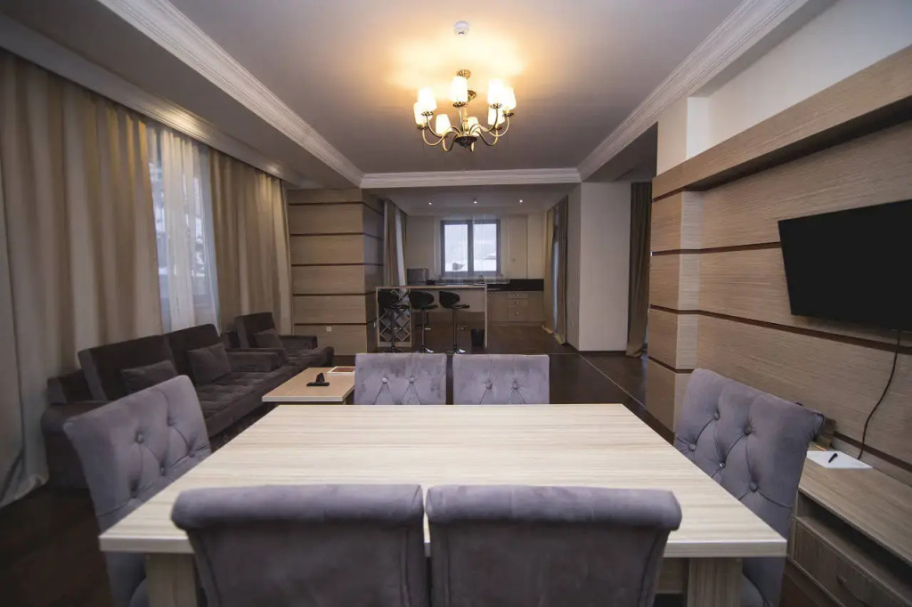В номере вы найдёте будильник, душ, телевизор, мини-бар, халат и тапочки. Оснащение зависит от выбранной категории номера.