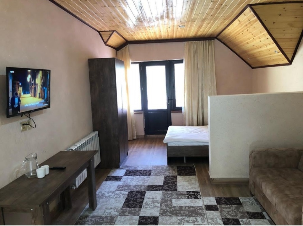 В номере вы найдёте телевизор и халат. Оснащение зависит от выбранной категории номера.