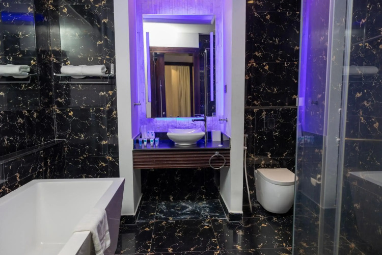 В номере вы найдёте душ, халат и тапочки. Перечисленные услуги есть не во всех номерах.