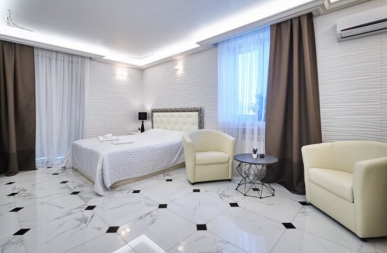 В номере вас будут ждать телевизор и халат. Оснащение зависит от выбранной категории номера.