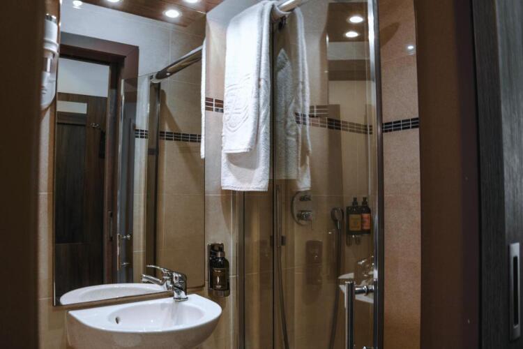 Номер уютно обставлен и оснащён необходимым, чтобы отдохнуть после долгого и насыщенного дня. Имеются душ, телевизор, халат и тапочки. Перечисленные услуги есть не во всех номерах.