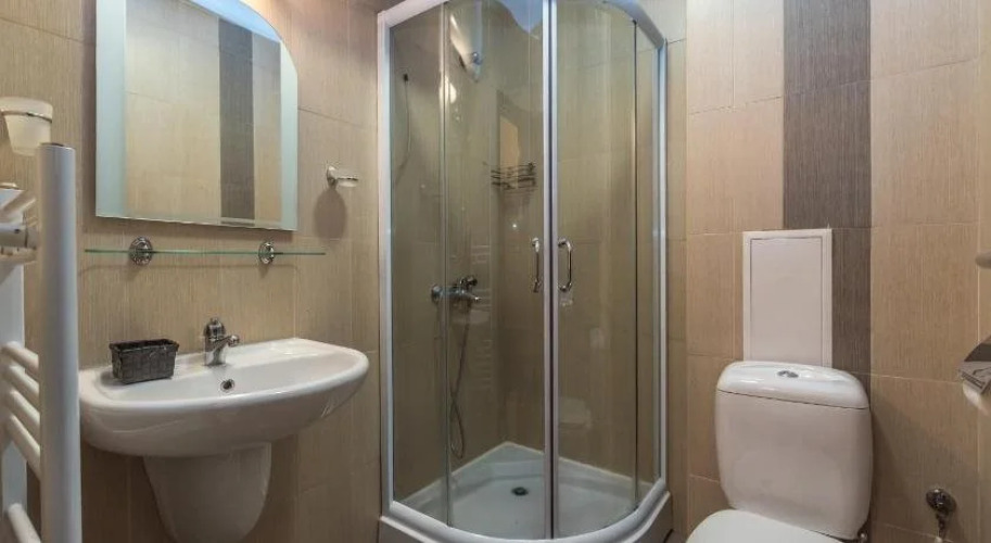 В номере вас будут ждать душ и телевизор. Перечисленные услуги есть не во всех номерах.