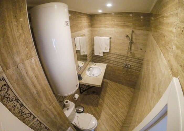 В номере вы найдёте душ и телевизор. Оснащение зависит от выбранной категории номера.