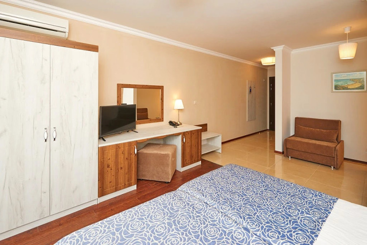 Чтобы вы могли отдохнуть после долгого дня, в номере есть телевизор. Оснащение зависит от выбранной категории номера.