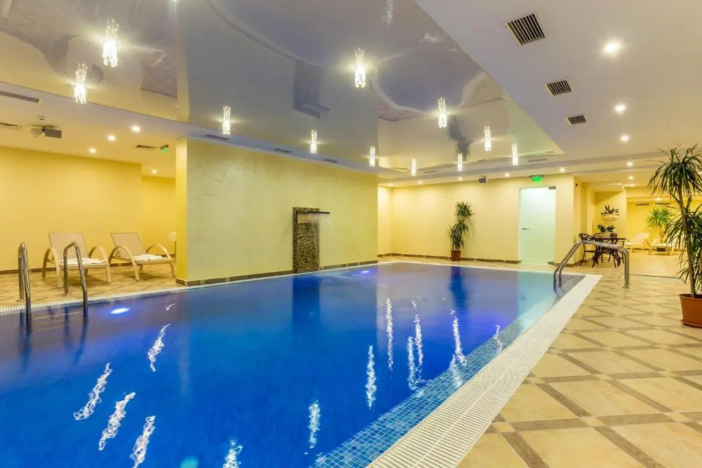 Гостям также доступны следующие услуги: сауна и паровая баня. Любителям спорта подготовили фитнес-центр. Здесь будем баловать себя водными процедурами: есть бассейн, крытый бассейн и открытый бассейн. Удобно для гостей с ограниченными возможностями: на верхние этажи гостей поднимает лифт.