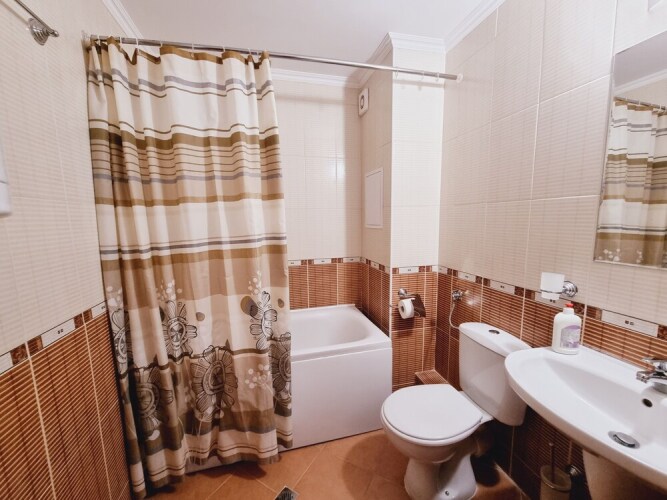 В номере вы найдёте душ и телевизор. Оснащение зависит от выбранной категории номера.