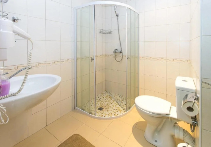 Номер уютно обставлен и оснащён необходимым, чтобы отдохнуть после долгого и насыщенного дня. Имеются душ, телевизор и тапочки. Оснащение зависит от выбранной категории номера.