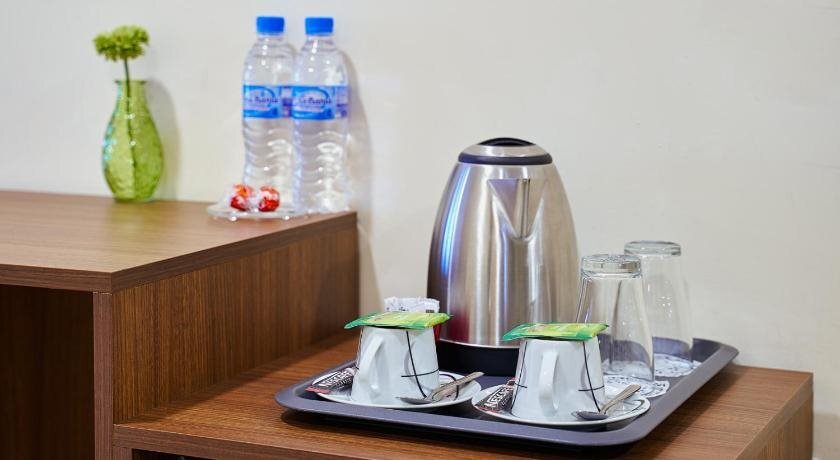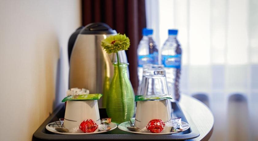 В номере вас будут ждать душ и телевизор. Оснащение зависит от выбранной категории номера.