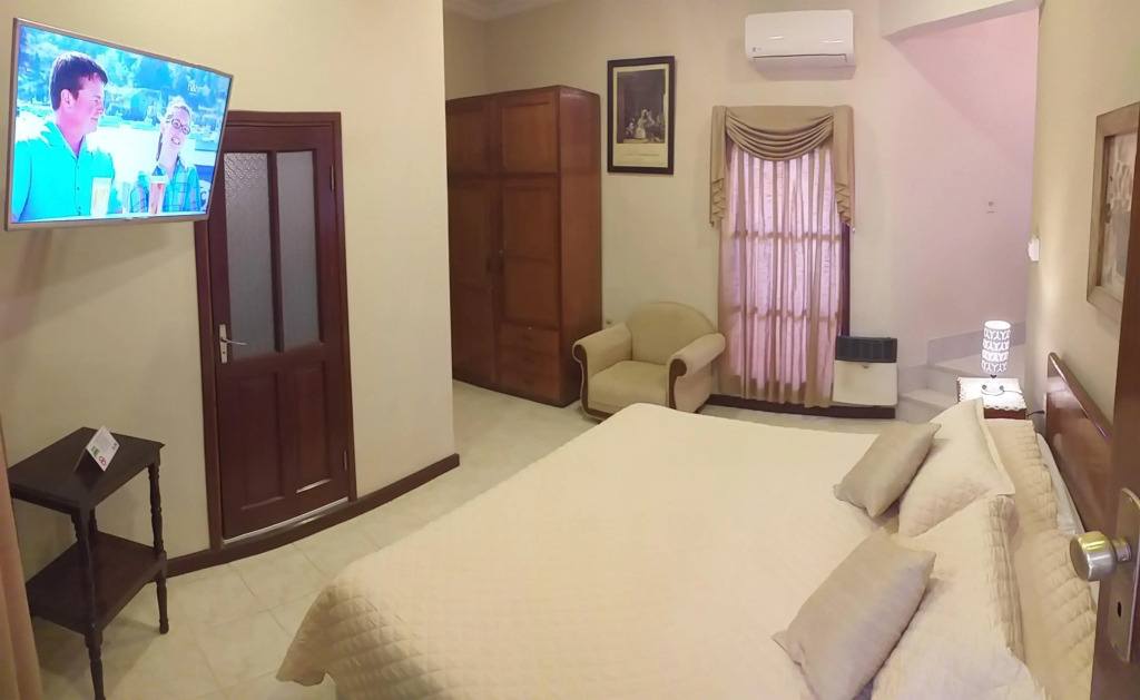 В номере вы найдёте душ и телевизор. Оснащение зависит от выбранной категории номера.
